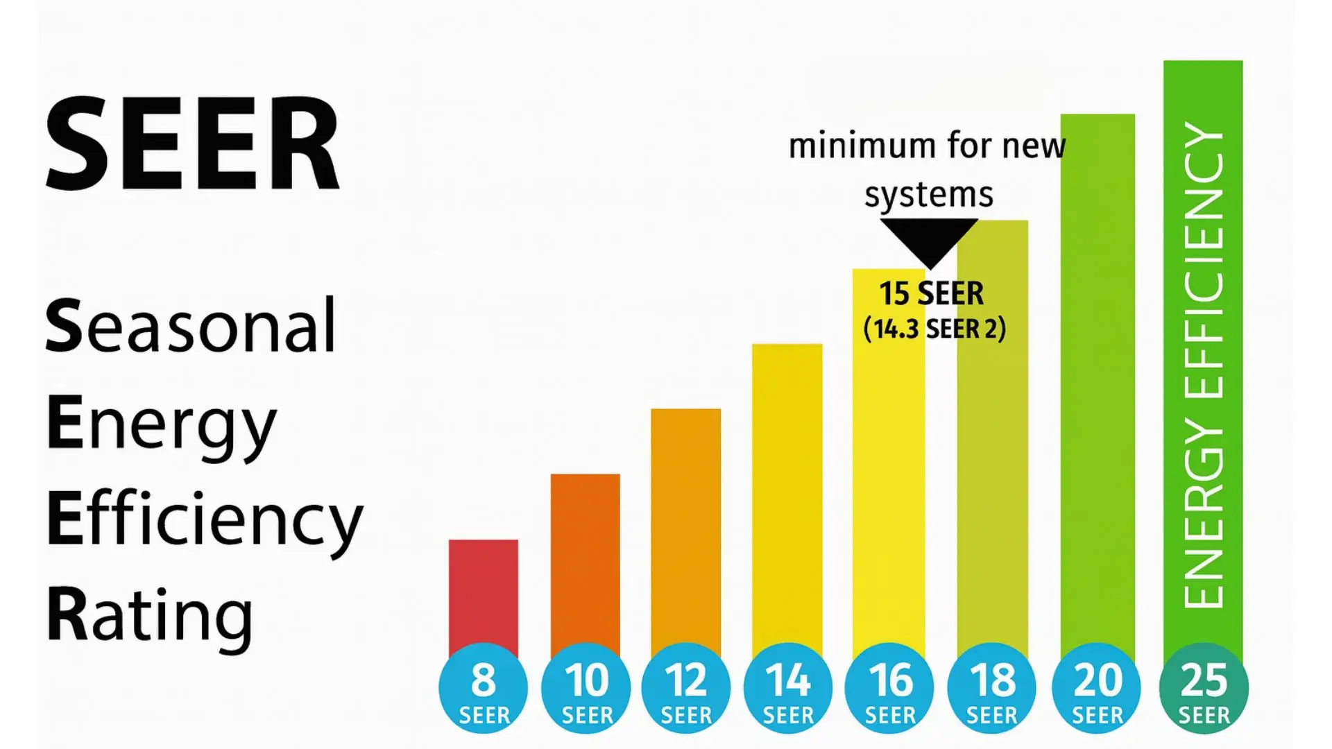The higher the SEER value, the less electricity the system needs to produce the same amount of cooling.